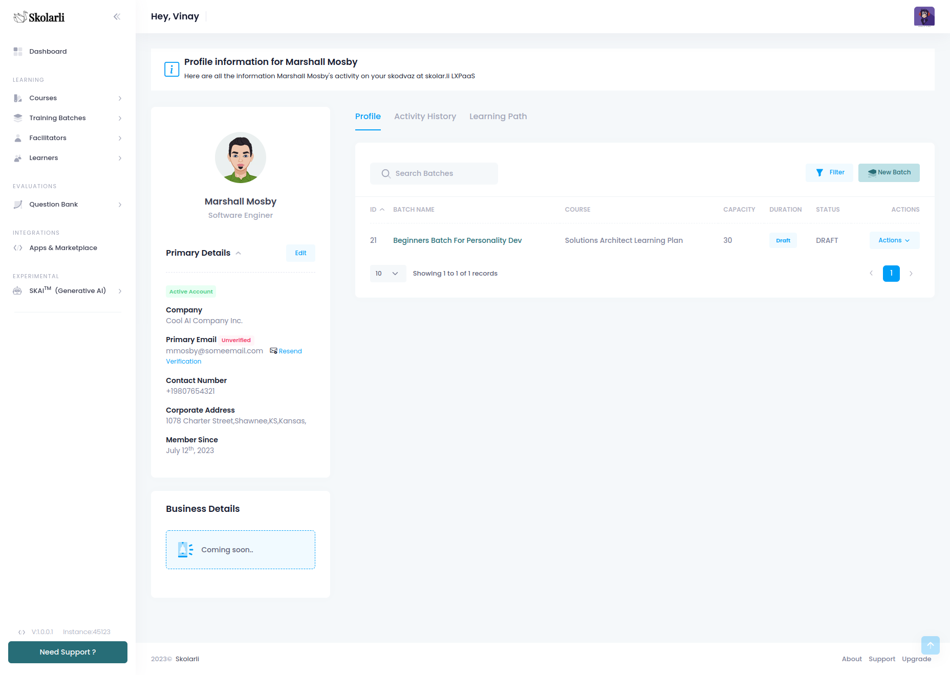 For Illustration: Since we had enroled Marshal to the batch previously, his profile will display the batch we enroled him to, along with all the other batches as well, Marshal is part of.